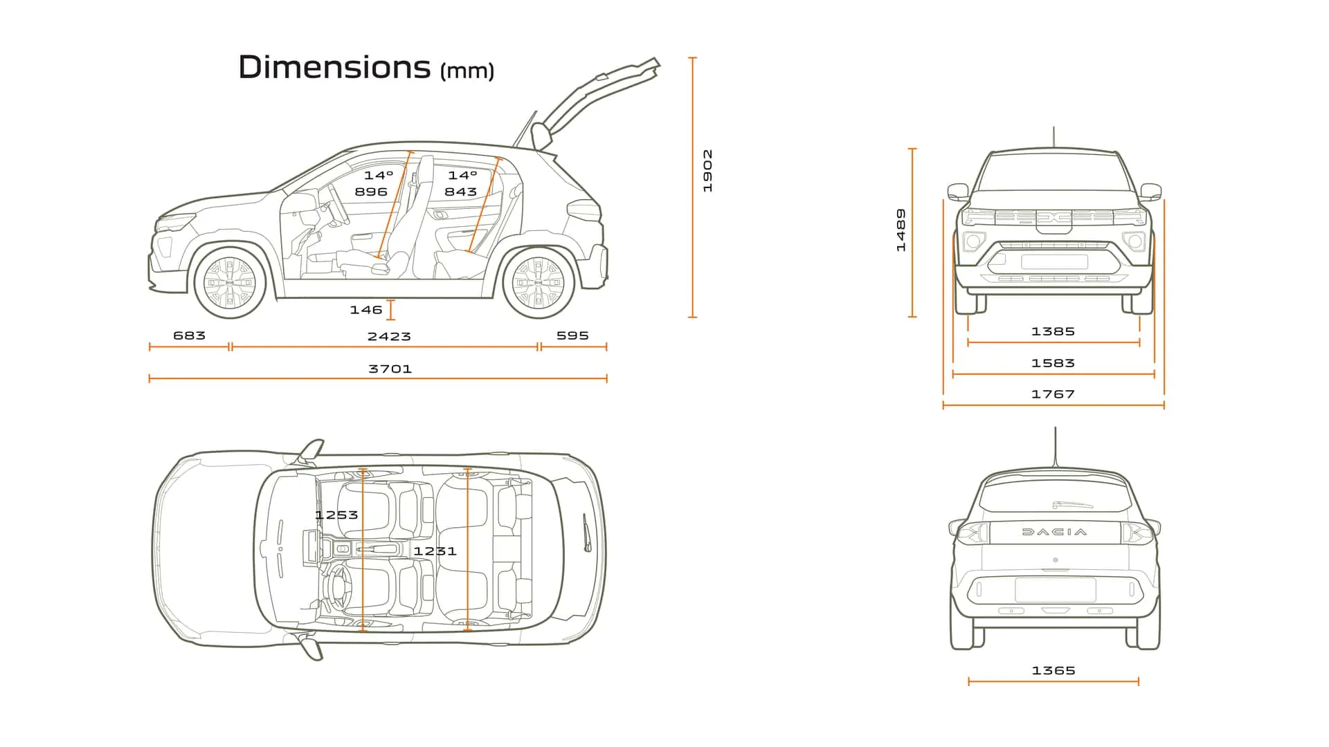 Visually, the Dacia Spring 2026 maintains the essence that made it recognizable, with few alterations. Dacia prioritizes functionality and efficiency, and this is reflected in its mass: at around 1 ton, it remains the lightest four-seater electric car on the market. This contained weight is fundamental to its efficiency and agility in urban traffic. The 308-liter trunk (expandable to 1,004 liters with the seats folded down) is one of the largest in the segment, surpassing rivals and offering practicality for daily use.